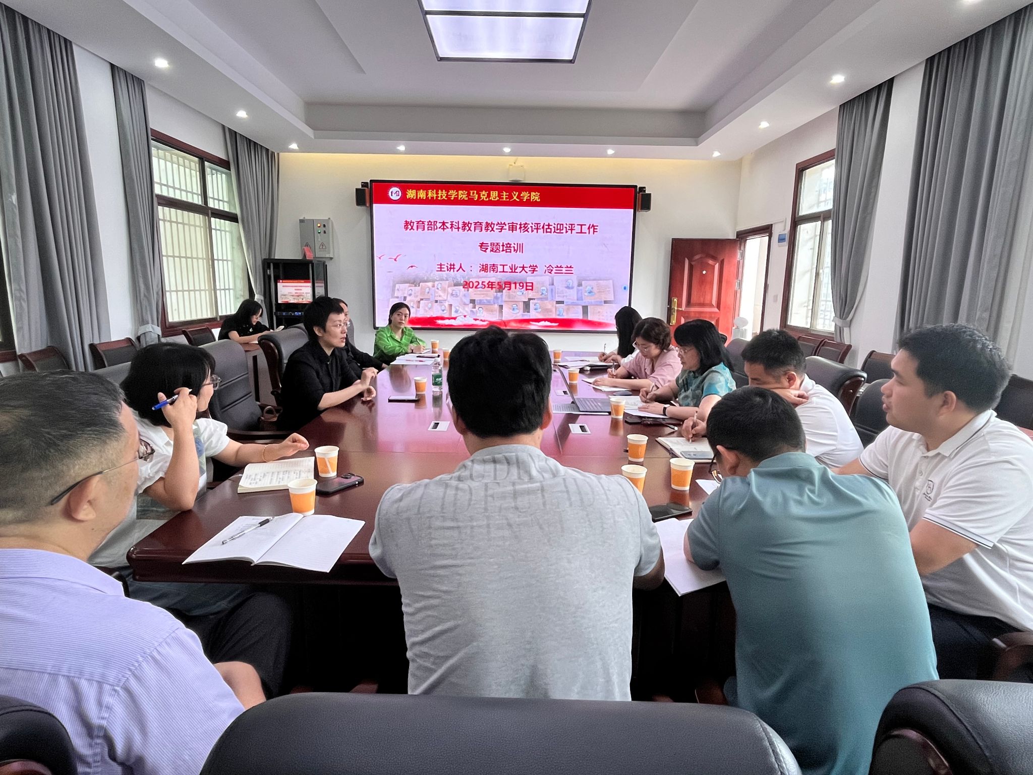 本讯网(通讯员 易佩)为对标提质、精准迎评,5月19日下午,我院在鹤鸣楼405会议室组织开展迎评专题培训。本次培训特邀湖南工业大学马克思主义学院冷兰兰副院长担任指导专家,学院领导班子、各教研室主任及三办主任参加了会议。