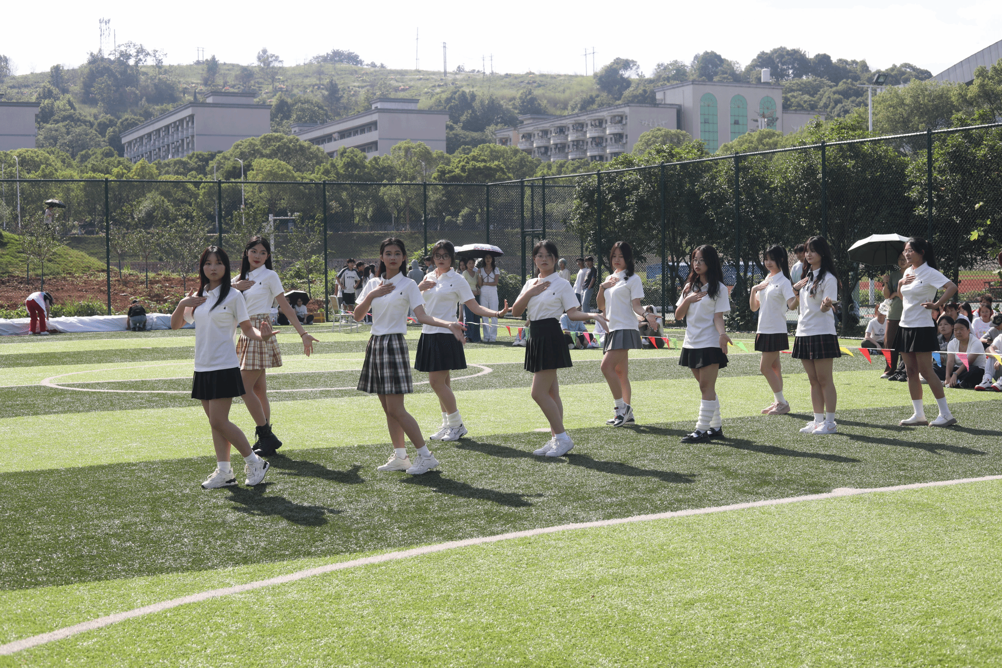 赛前,学院拉拉队身着统一服装,伴随动感旋律舞动青春,点燃了现场热情,为我院参赛队伍加油助威。发令枪响后,参赛队员脚踝绑带相连,以整齐划一的步伐冲刺向前。队员间配合默契、节奏稳健,充分展现了日常训练积累的协作功底,现场观众掌声此起彼伏。