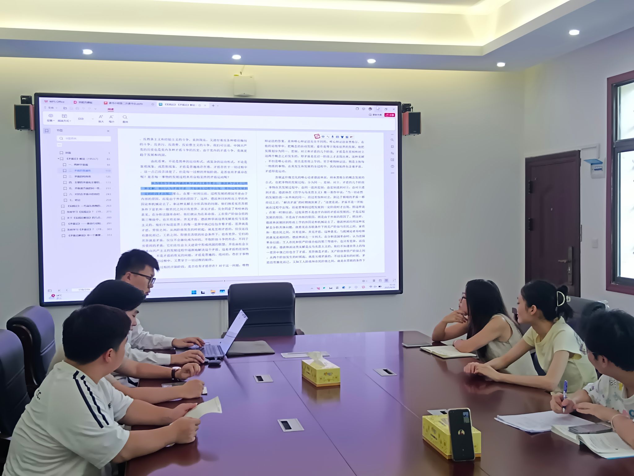 研讨环节,学员们紧扣原著,围绕“认识与实践的辩证关系”“理论对实践的指导作用”等核心命题展开深入交流。组员许圣翰分享道:“作为青年学子,我深刻体会到实践是认识的源头活水,要积极投身社会调研,在实践中检验和发展认识。”