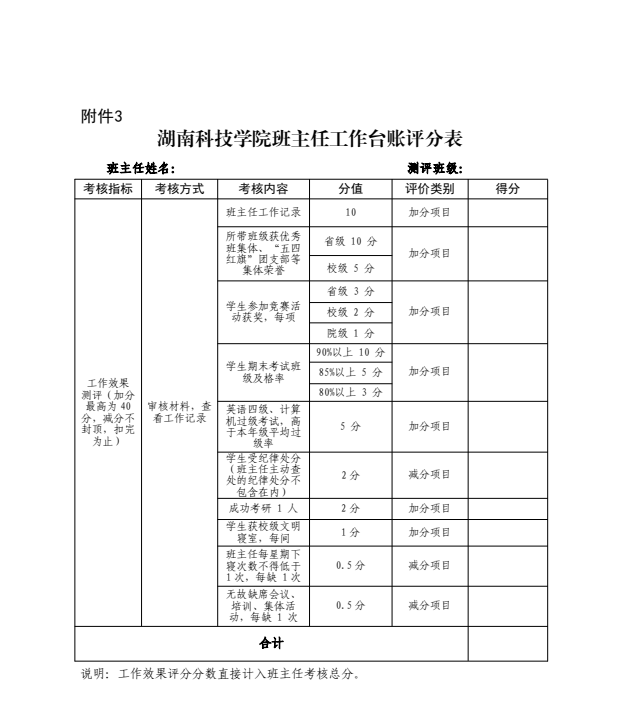 3.拼搏在线(中国)唯一官方网站班主任工作效果评分表