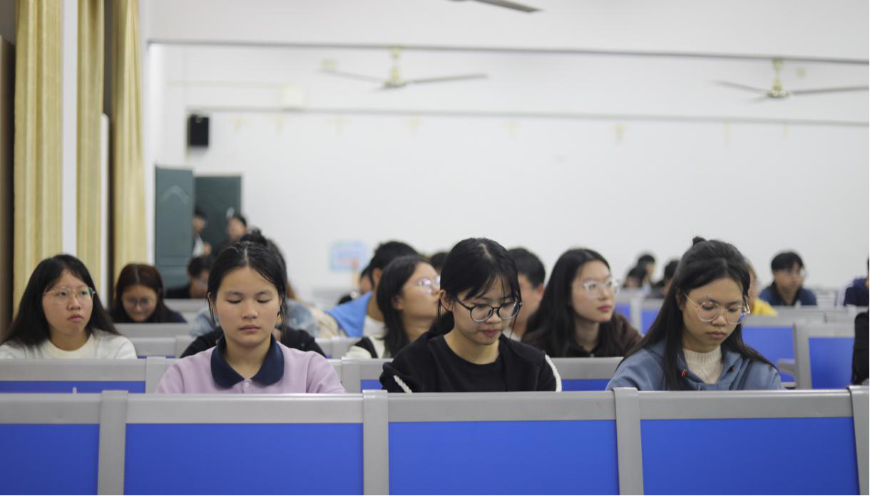 本网讯(记者 郭瑞、陈岳景)“持良好心态,享健康人生”,为加强学生心理健康教育工作,充分发挥大学生自我教育、自我管理、自我服务的作用,11月8日晚,马克思主义学院与理学院于明理楼502开展2023年下期心理信息员培训。本次培训由理学院赵江南老师主讲,2023级心理信息员参加。