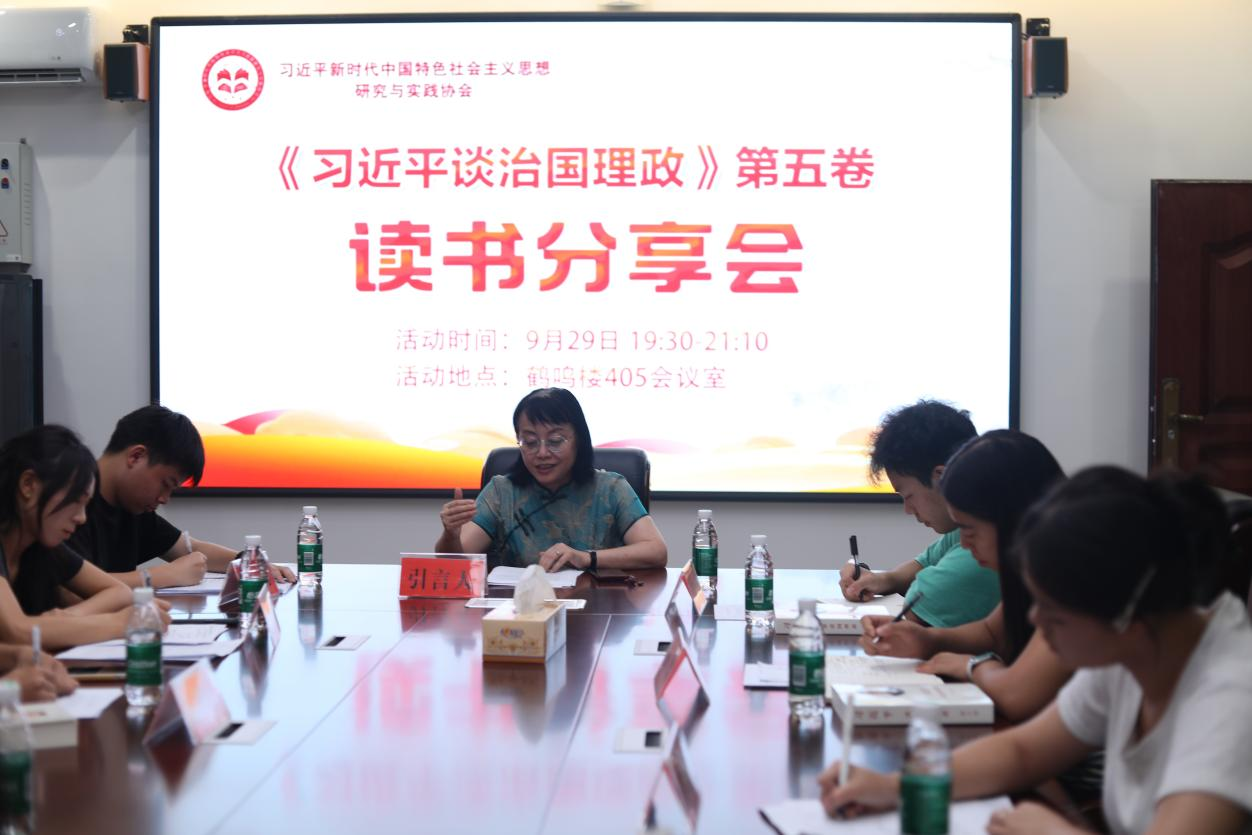 本网讯(记者 刘获逞 李嘉瑶 周聪)9月29日晚,拼搏在线(中国)唯一官方网站习近平新时代中国特色社会主义思想研究与实践协会在鹤鸣楼405会议室举办“《习近平谈治国理政》第五卷读书分享会”活动。