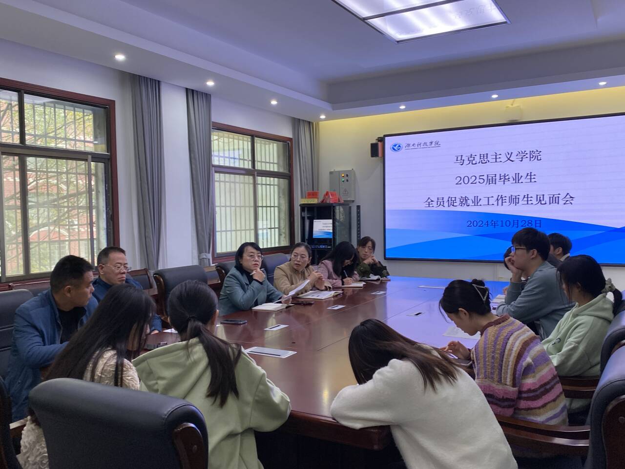 本网讯(通讯员 曾庆思)10月28日上午,2025届毕业生全员促就业工作会议在马克思主义学院鹤鸣楼405室召开。马克思主义学院院长廖雅琴,党总支书记陈玉皎,副院长杨军,副书记高丹,毕业班班主任以及部分毕业生参加会议。