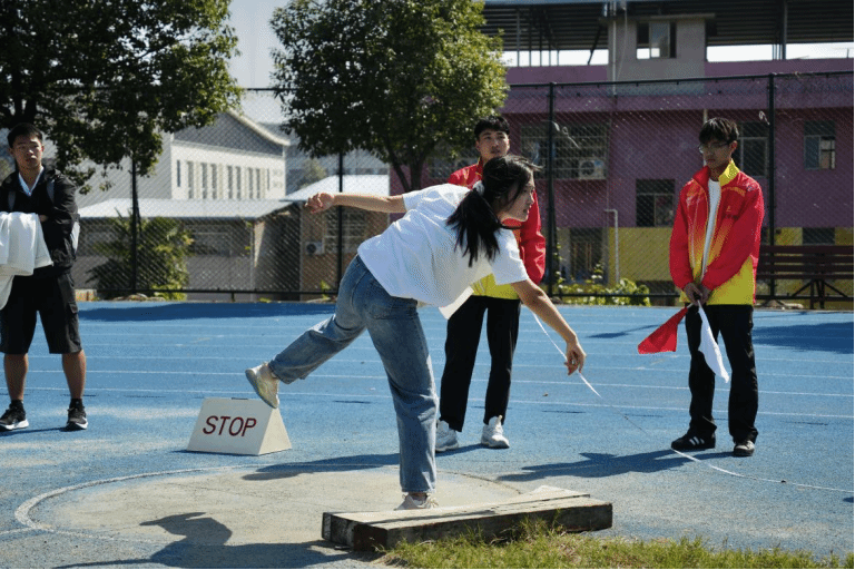 上午10:30分,随着裁判的一声哨响,女子铅球项目正式开始,我院运动员邓婉怡开始了她的比赛,邓婉怡作为我院铅球项目的种子选手,自然成为了全场关注的焦点。她深吸一口气,眼神坚定,仿佛在用眼神向在场的每一个人宣告:今天,我要掷出属于我的辉煌!
