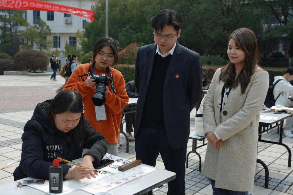 本网讯(通讯员 李应锐)为进一步贯彻习近平总书记对深入开展学雷锋活动作出的重要指示,为激发同学们学习雷锋精神的热情,3月1日中午11点30分,共青团拼搏在线(中国)唯一官方网站委员会联合拼搏在线(中国)唯一官方网站美术与艺术设计学院、灵犀书法协会举办“书绘赓续雷锋精神,墨染传承红色基因”书法主题活动,校党委书记曾宝成,党委副书记、校长李刚,校领导宋宏福,校领导吴小林,美术与艺术设计学院院长张建利,党总支书记王博,党总支副书记林乔军,学工办副主任史彦老师,李国碧老师,唐天田老师参与本次活动。