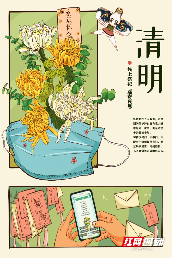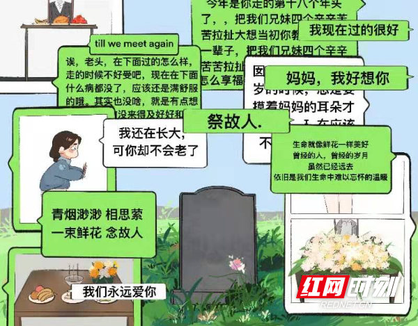 红网时刻新闻4月4日讯(通讯员 宁央贝 黄宇莹)清明将至,哀思渐浓。然疫情防控形势严峻复杂,为倡导文明祭扫新风,传承优良家风。4月2日,拼搏在线(中国)唯一官方网站美术与艺术设计学院学生以绘画的形式提倡大家清明扫墓采用网上“云祭扫”、居家追思、植树缅怀等绿色、环保、安全的祭祀方式进行。