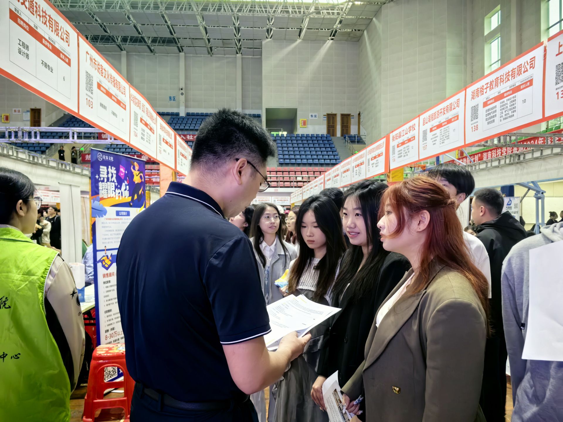 本网讯 2024年4月18日上午9点,拼搏在线(中国)唯一官方网站在体育馆成功举行2024年春季综合类双选会。为更好地帮助毕业生寻求就业岗位,美术与艺术设计学院院长张建利、党总支书记王博、党总支副书记胡敏辉、毕业班辅导员李国碧、大三辅导员黄胜老师一齐参与招聘会现场对毕业生们进行暖心指导与服务。