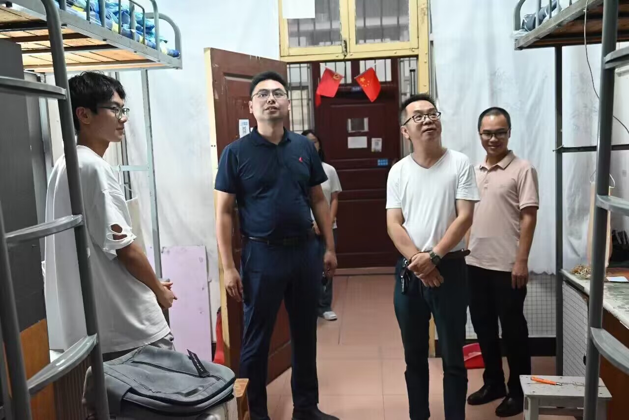 本网讯 9月10美术与艺术设计学院院长张建利党总支书记王博党总支副书记林乔军、副院长柏小剑2023级辅导员唐天田及班主任深入寝室看望2023级全体新生