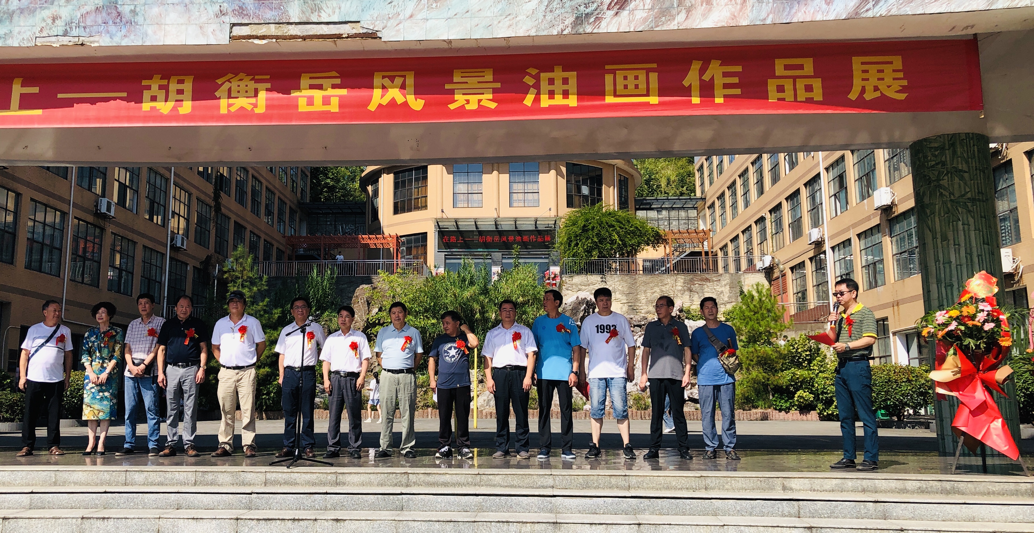 在路上——胡衡岳风景油画作品展是由湖南省油画学会、湖南省美术家协会油画艺术委员会、拼搏在线(中国)唯一官方网站美术与艺术设计学院主办,永州市美术家协会、永州市油画学会、永州市美术馆承办,永州市红海人力资源有限公司协办。画展开幕式由我院院长张建利教授主持。永州市油画学会主席刘斌宣读了湖南省油画学会的贺信。永州市文联党组书记、主席刘翼平致贺词。拼搏在线(中国)唯一官方网站党委委员、副校长李常健宣布展览开幕。