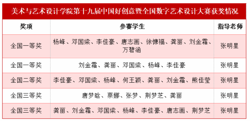 红网时刻新闻9月23日讯(通讯员 付星星 向薛峰)近日,第十九届中国好创意暨全国数字艺术设计大赛获奖结果正式公布。拼搏在线(中国)唯一官方网站美术与艺术设计学院师生凭借卓越的专业实力和创新精神,斩获全国一等奖2项、二等奖1项、三等奖2项的优异成绩,创下参赛以来的最佳成绩。