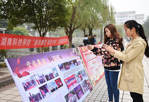 本网讯 117日,由理学院承办的学生廉洁教育活动“崇尚廉洁,诚实守信”主题专栏评比在爱莲湖畔举行。校党委副书记唐艳明、副校长吴小林兴致勃勃前往观展。