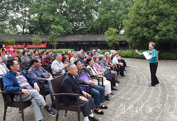 本网讯(记者 罗磊 实习记者 李蓉  摄影 何帅文)岁岁重阳,今又重阳,在金风送爽、丹桂飘香的季节,我们又迎来了传统的敬老节日——“九九”重阳节。10月9日,学校离退休工作处组织离退休老教师共赴萍洲书院,与老人共同欢庆节日。