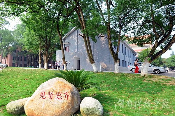 “见贤思齐”文化石立于国学院前。“见贤思齐”出自《论语·里仁》第二十五条:“见贤思齐焉,见不贤而内自省也。”贤:德才兼备的人;齐:看齐。见到德才兼备的人就要向他看齐。荀子曰:“蓬生麻中,不扶自直;白沙在涅,与之俱黑。”这就是榜样的力量。见贤思齐,表示好的榜样对自己灵魂的震撼,对自己行动的规范。习近平总书记多次提出领导干部要见贤思齐,并强调“用一贤人则群贤毕至,见贤思齐就蔚然成风。”