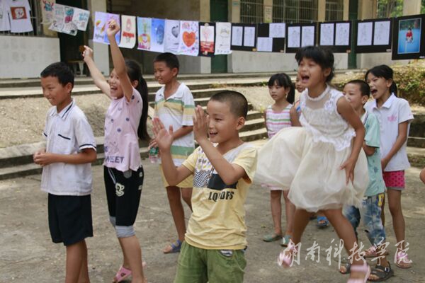 这是传媒学院社会实践服务团连续第二年深入江永县松柏瑶族乡中心小学开展帮扶活动。松柏乡是瑶族乡,居民大多有着自己独特的语言和风俗习惯,普通话基础水平不高,志愿者们在课堂上着重加强对小学生们普通话的训练。值此中国共产党成立95周年之际,她们带领小学生学习这首赞颂祖国的诗,也是送给祖国母亲最美好的祝福。