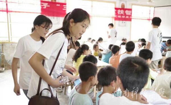 7月3日,理学院“理学星空”服务调研团前往新田潮水铺村进行为期5天的教育扶贫“三下乡”活动。志愿团一行15人分别组织义务支教、爱心捐赠、专题调研、宣传文化、卫生知识、播放爱国教育电影、探望孤寡老人、知识竞赛、趣味运动会、文艺汇演等各项活动。