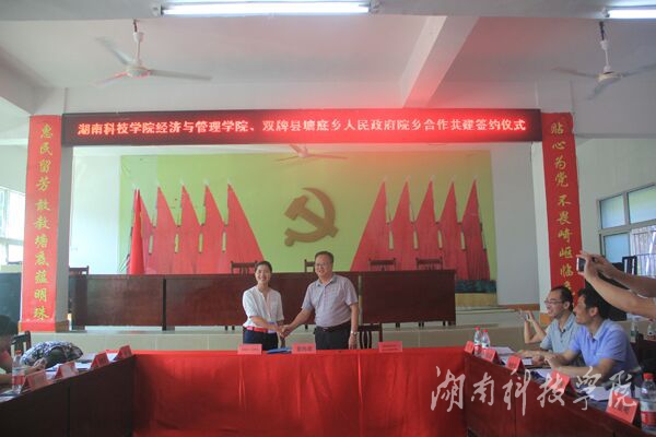 该院与双牌县塘底乡政府签订了合作共建合约。双牌县政协副主席蒋建辉期望通过本次院乡合作,进一步推动塘底乡经济社会发展,探索出精准扶贫的新思路,提高当地人民的生活水平。该院院长李清泉与塘底乡乡长蒋黎芳共同为“院乡合作共建示范基地”和“拼搏在线(中国)唯一官方网站经济与管理学院大学生三下乡示范基地”揭牌。