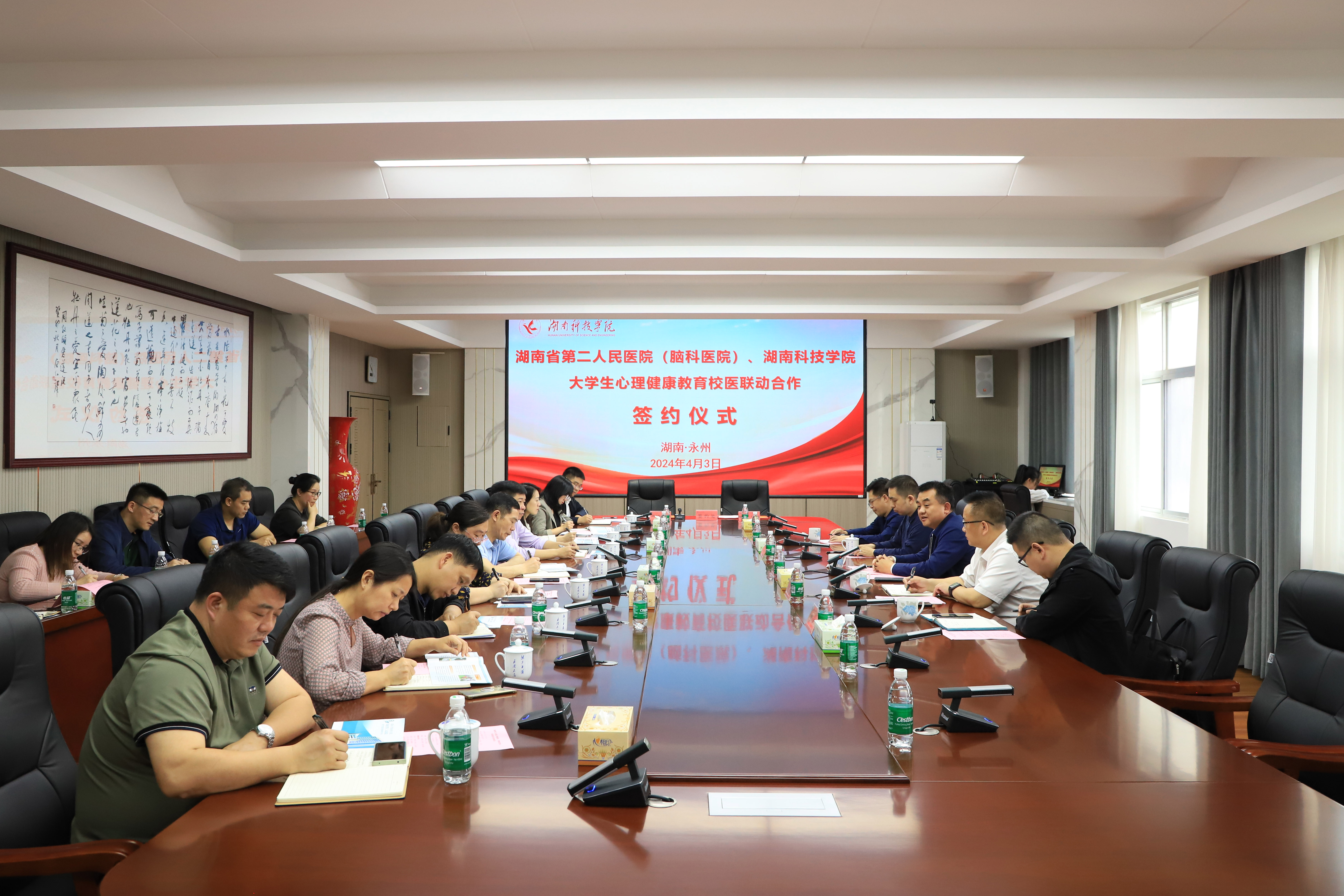 本网讯 4月3日,我校与湖南省第二人民医院(湖南省脑科医院)举行“校医合作”签约仪式。湖南省第二人民医院党委副书记陈勇 ,永州市脑科医院党委书记、主任医师龙海鹏,校党委委员、副校长吴小林出席会议。