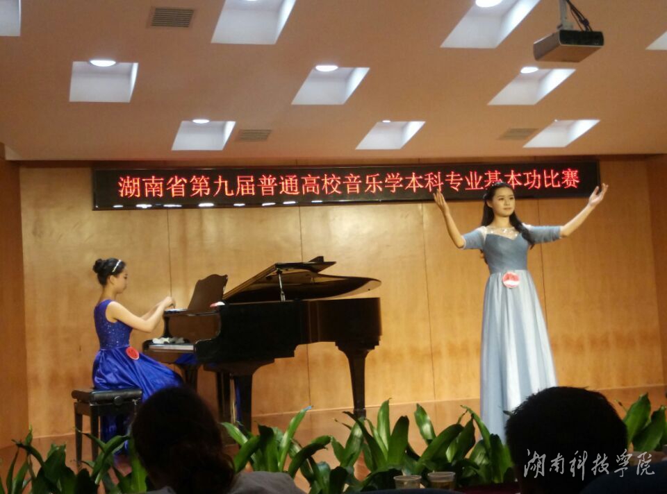 本次比赛由湖南省教育厅、湖南省学校艺术教育委员会主办,共有17所省内本科院校参赛,比赛项目包括音乐基础理论综合测试、声乐演唱、钢琴演奏、自弹自唱、合唱指挥。