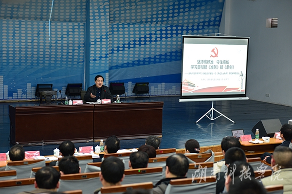 本网讯(记者 张敏杰 实习记者 钟涛)12月25日下午,湖南省纪委法规室主任张泽军应邀来校作学习贯彻《中国共产党廉洁自律准则》和《中国共产党纪律处分条例》专题学习辅导报告。校党委书记陈弘主持,校党委副书记唐艳明,副校长宋宏福,纪委书记彭立威,副校长李常健、吴小林,正校级督导袁先友,副校级督导、工会主席陈仲庚及全校副科级以上党员干部参加学习。