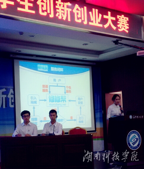 “修修帮”团队正在湖南省赛台上展示项目