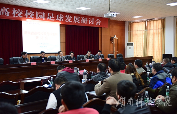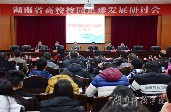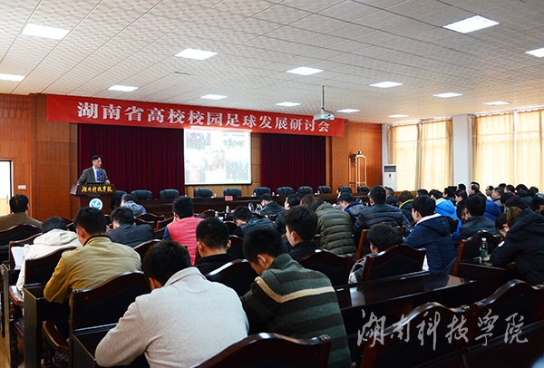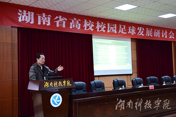 本网讯  12月18日至19日,高校校园足球发展研讨会在我校举行。与会专家围绕高校校园足球发展及充分发挥足球育人功能、培养全面发展人才展开深入研讨交流。湖南省教育厅副巡视员郭建国及校长曾宝成,副校长宋宏福、程智开等出席论坛开幕式。论坛吸引了来自省内各高校的体育学院院长和专家学者40余人出席。校党委书记陈弘专门撰文《足球与教育》,阐述足球与教育的关系,提出“文明学生的精神,强健学生的体魄,是教育的本义,两者不可偏废。”