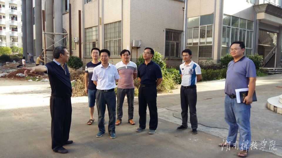 本网7月28日讯 (记者 乐为  摄影 何帅文)校党委书记陈弘,校长曾宝成,副校级督导、工会主席陈仲庚等学校领导十分牵挂目前正在施工的部分“民生工程”,冒着酷暑对食堂装修改造工程、学校幼儿园项目建设情况、公租房工程建设、北区简易路工程、东门停车场改造、校园环境美化绿化等进行实地考察,并现场指导。