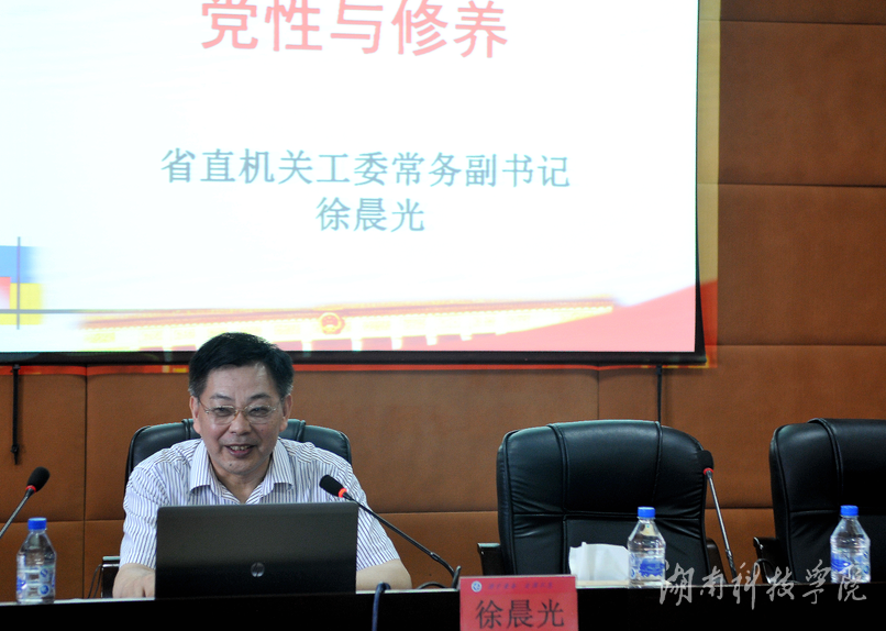 徐晨光的讲课主题是“党性与修养”。他从党性、修养两个词的透析入手,指出共产党员党性的核心是全心全意为人民服务,修养则是指人的综合素质。他从党员领导干部加强党性修养的紧迫性、党员领导干部党性修养的主要标准、党员领导干部党性修养的主要内容三大方面,运用大量实例,对“党性与修养”进行了深入浅出地讲解。