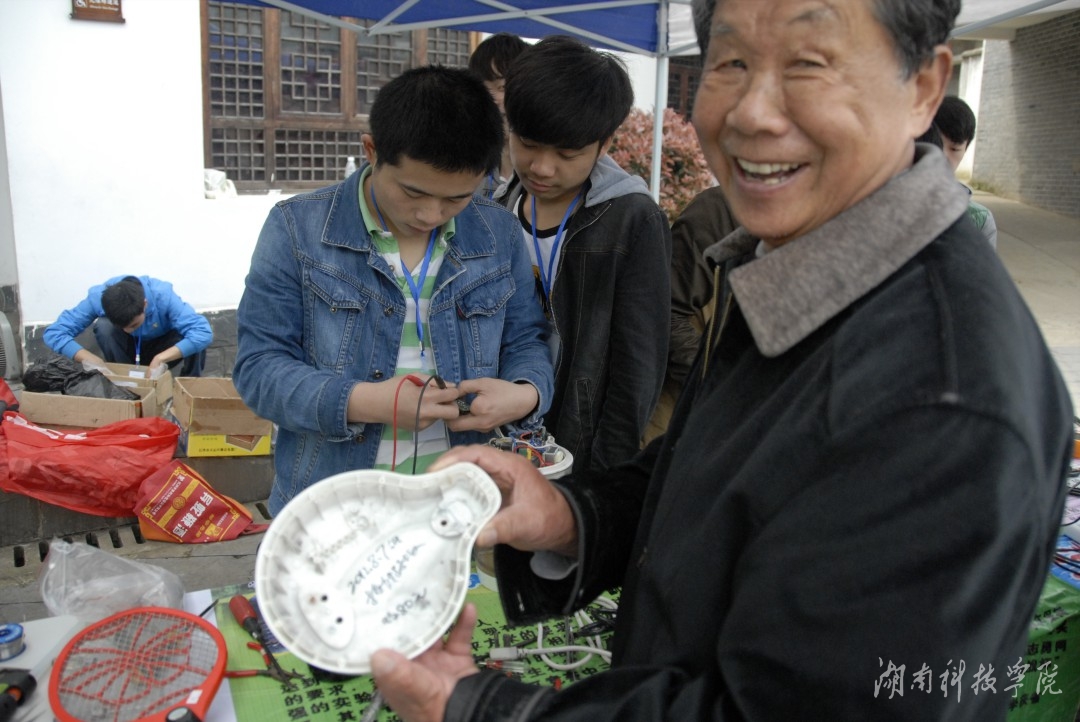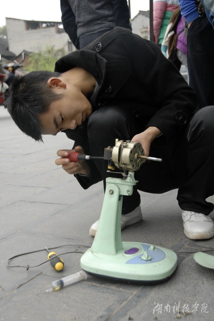 活动为期一整天,志愿者们一部分走进附近居民家中进行安全用电以及如何节能的宣传工作,让群众了解生活中的安全用电常识;一部分熟练地将台灯、电风扇、电吹风、玩具车等一一拆开,仔细检查故障原因。他们不辞辛苦地一边反复检查、反复测试和细心的拆卸和焊接,还一边耐心地向居民介绍损坏原因和保养方法。