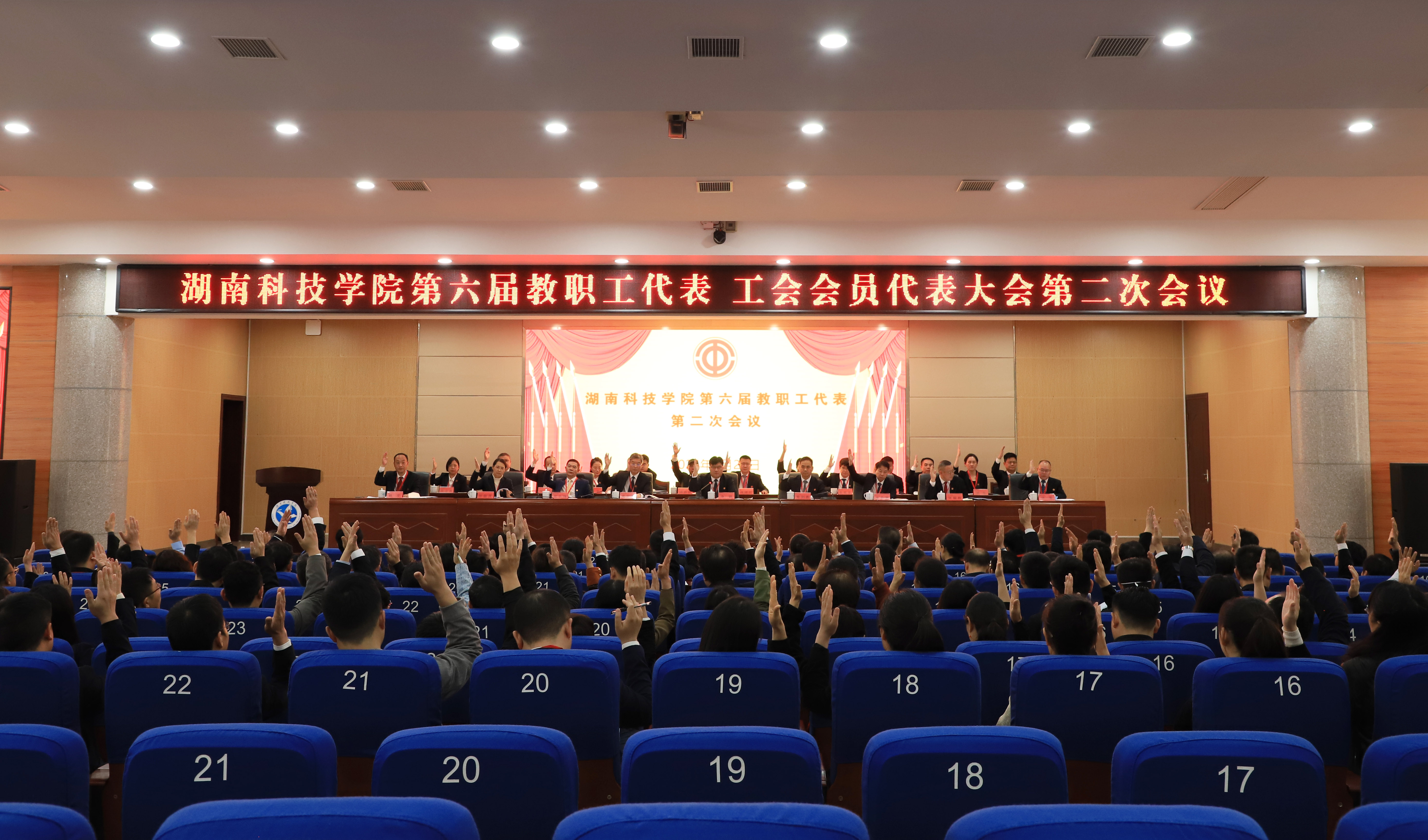 下午,为期一天的第六届教职工代表、工会会员代表大会第二次会议圆满完成各项议程,在潇湘大讲堂闭幕。
