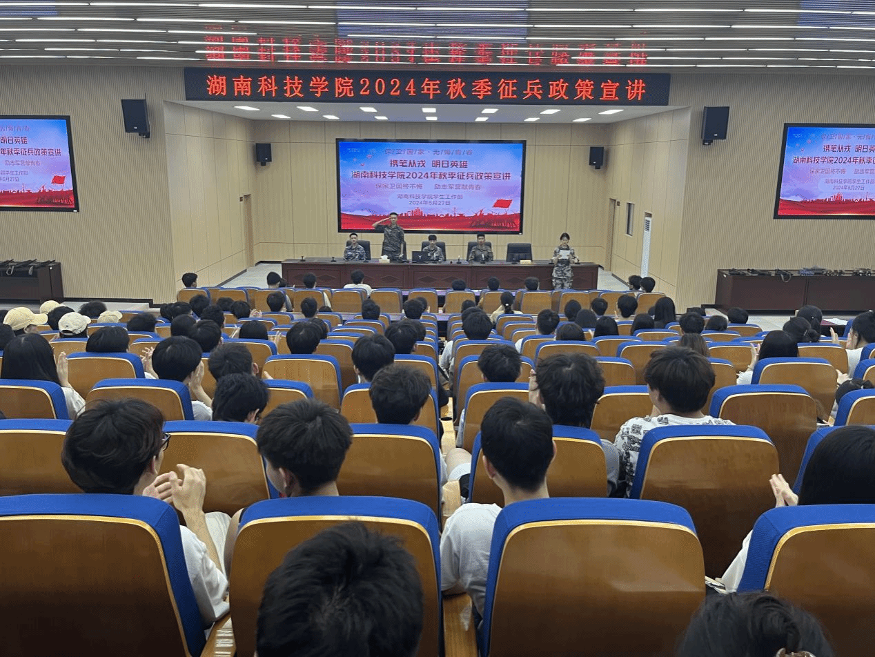 本网讯(通讯员 于锋)为做好2024年秋季征兵工作,激发我校青年学子参军报国热情,近日,学校在明德楼100报告厅开展“‘携笔从戎,明日英雄’2024年秋季征兵政策宣讲”活动,吸引近300名学生参加。