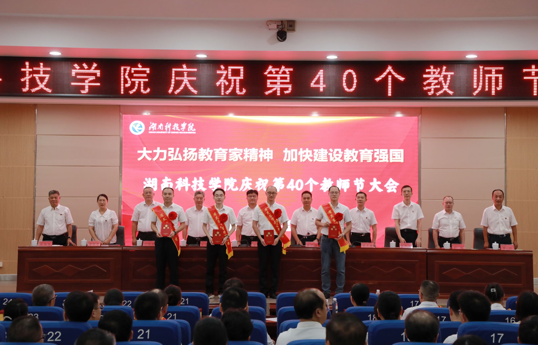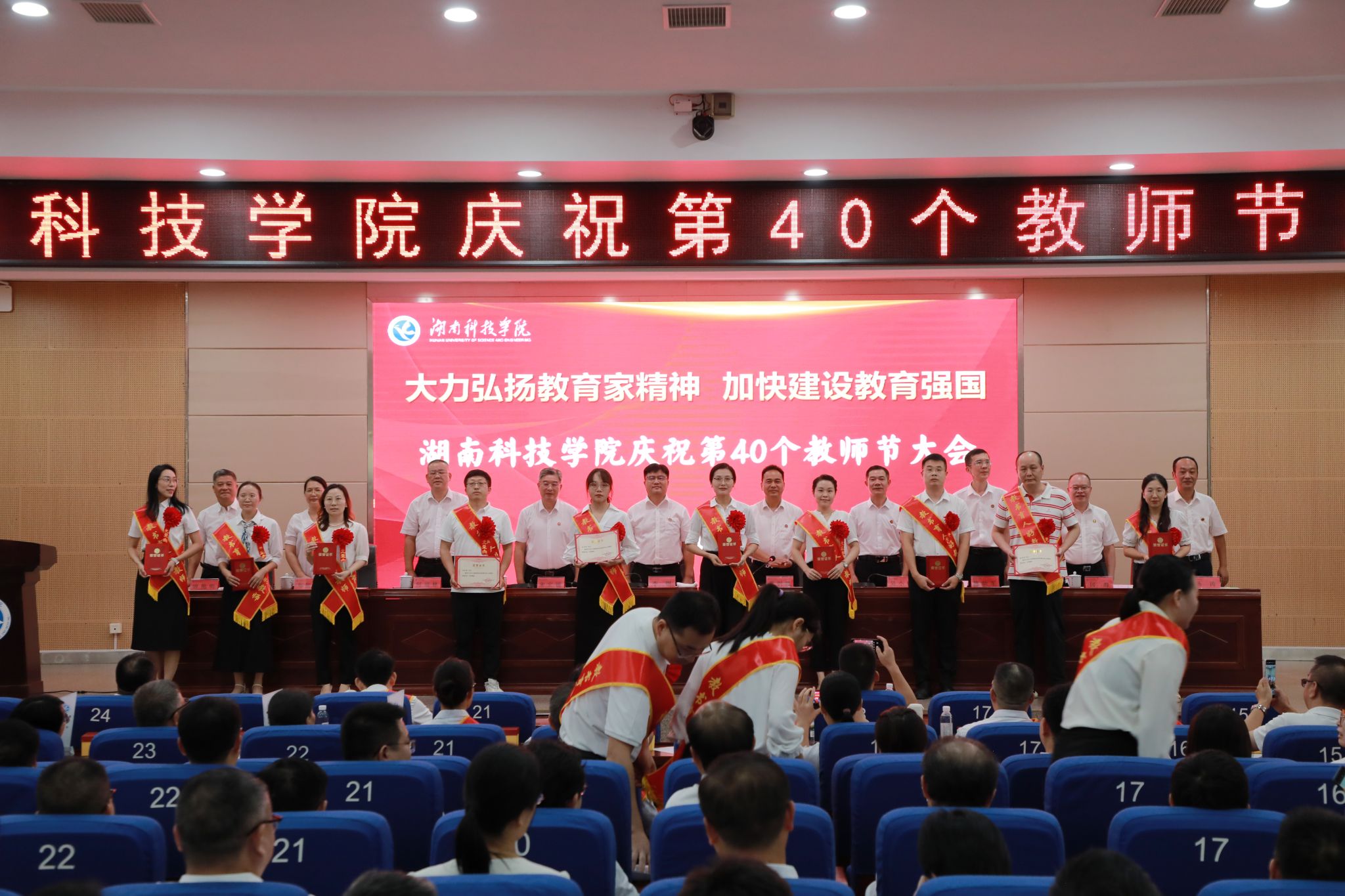本网讯 (记者 孙淑娴 摄影 谢志豪)9月10日,学校在潇湘大讲堂举行庆祝第40个教师节暨优秀教师表彰大会,校党委书记李钢、校长黄创霞,校领导宋宏福、吴小林、何福林、陈灿军、郑银芳、何海,党委委员、组织部部长杨涛以及受表彰对象、新进教师、全体中层干部、教学学院教师代表参加会议。会议由黄创霞主持。