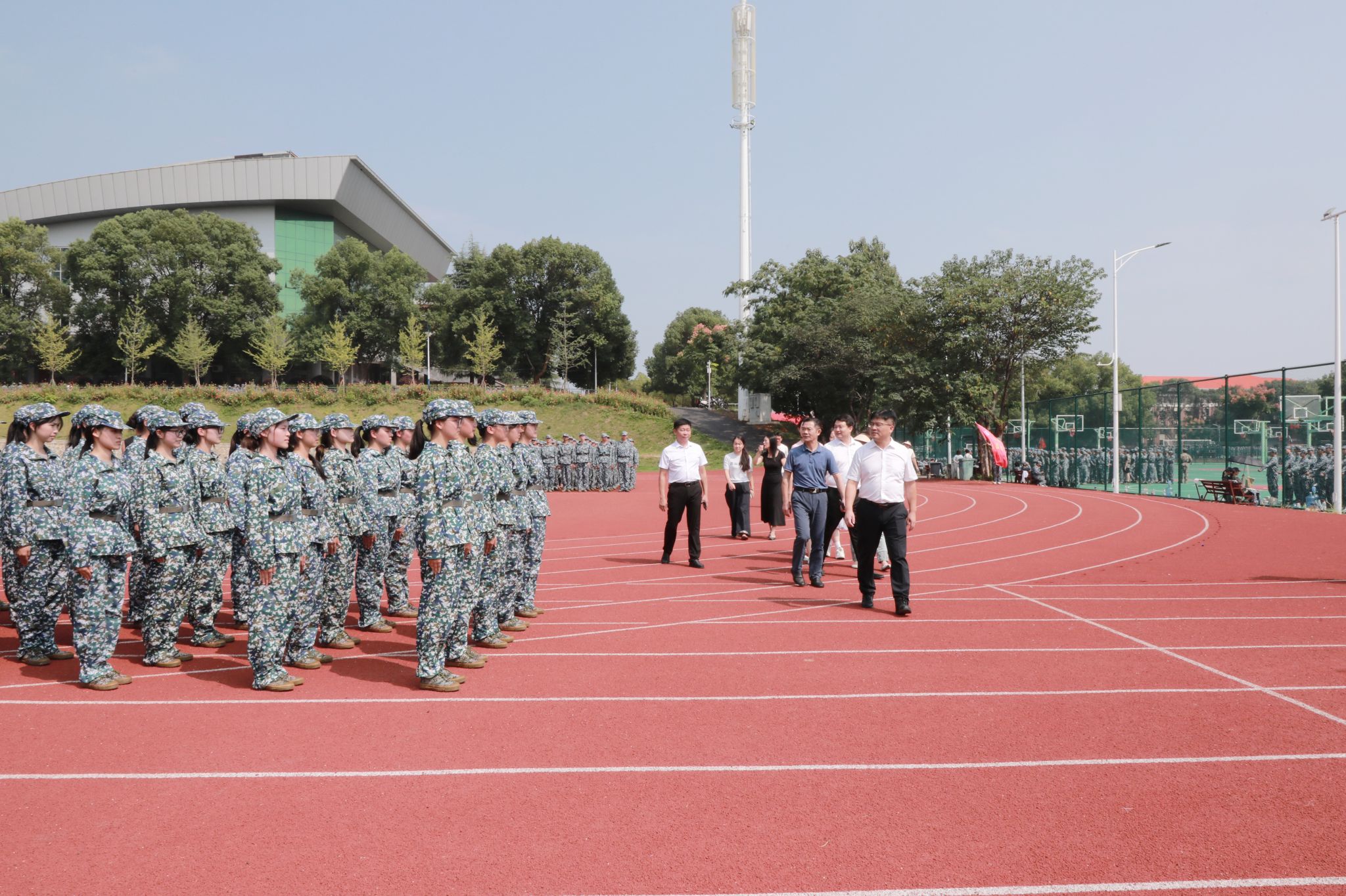 本网讯(通讯员 陈方)军姿彰显意志,汗水挥洒青春。9月27日上午,校党委书记李钢、副校长吴小林一行深入军训场地检查指导新生军训工作,看望慰问2024级新生和带训教官。