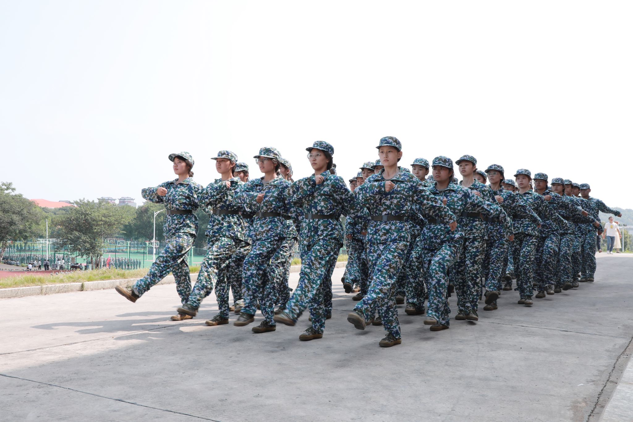 军训场上,新生们个个精神饱满,军姿挺拔、口号嘹亮,始终保持着高昂的斗志。他们严守军训纪律,认真执行教官的各项指令,力求做到每一个动作都准确到位。他们坚持不懈地训练,用实际行动展示了新时代青年大学生风采。