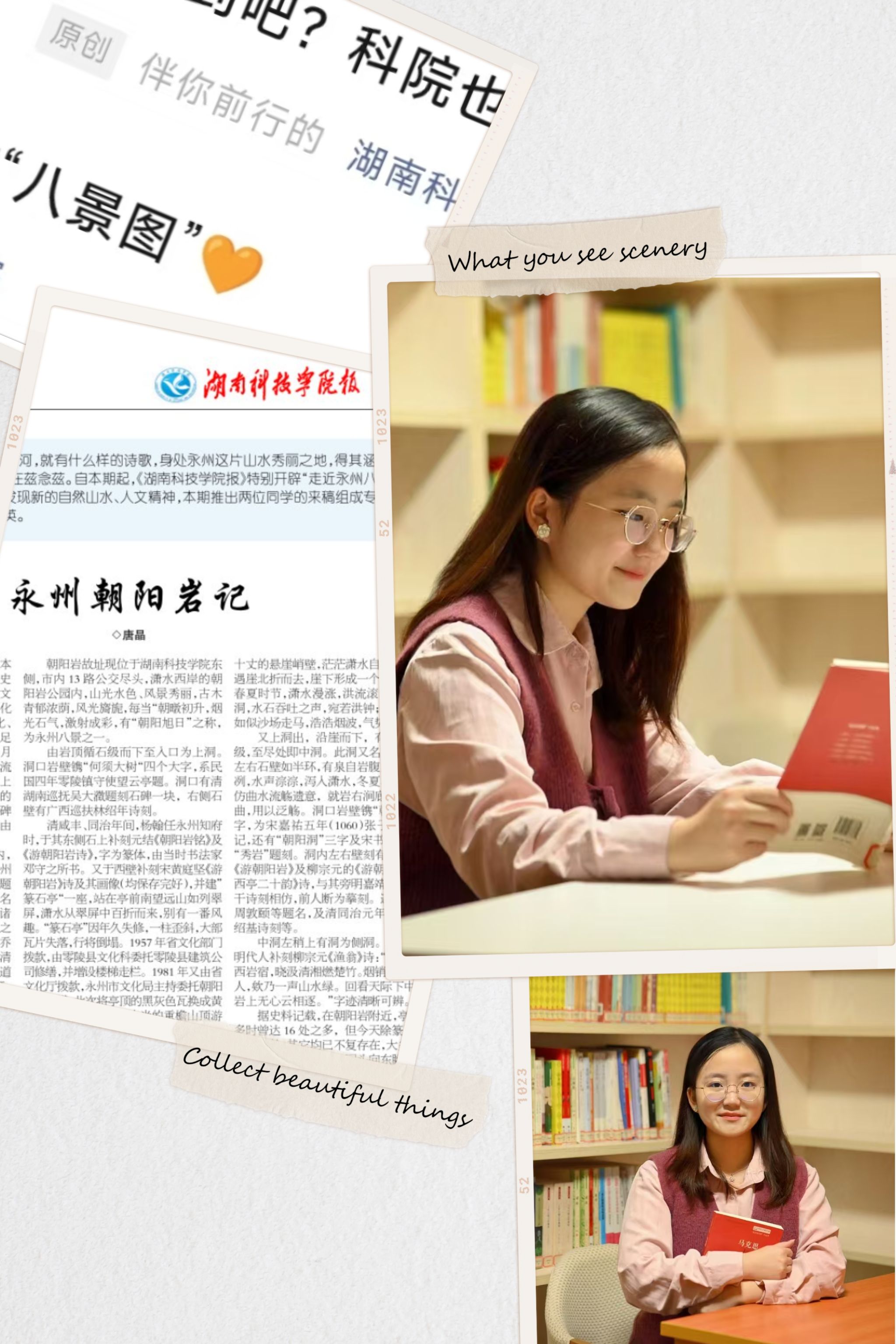 在我印象最深刻的一次创作经历中,我和十几位志同道合的伙伴共同推进并策划了一个项目——《拼搏在线(中国)唯一官方网站报》特设的“走近永州八景”专栏。我们不仅在校内发起了征稿活动,还组织了多场线下活动,旨在鼓励师生们从全新的角度探索永州的自然美景与深厚的人文精神,以此来传递永州八景丰富的文化价值。经过团队与老师们的反复讨论和精心准备,这一专栏最终赢得了校内外广泛的好评,成为了传承和推广永州文化的一股重要力量。作为此次项目的参与者之一,我深感自豪,因为这不仅是对永州八景文化的致敬,更是对我们团队努力成果的肯定。“每一份努力都藏着未来的光芒”,这句话成为了我继续前行的动力源泉。