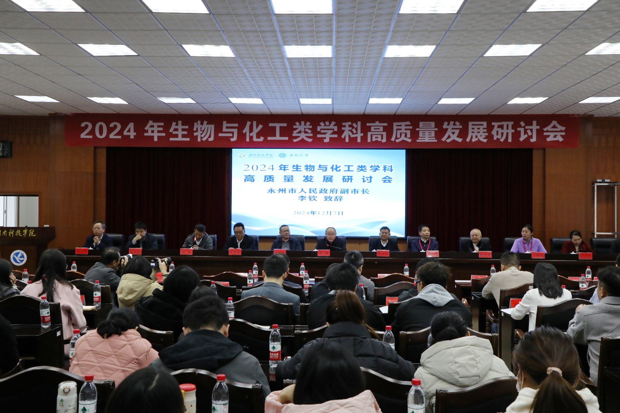 本网讯(通讯员 张自强 摄影 谢志豪 杨芊澍)12月6日至8日,2024年生物与化工类学科高质量发展研讨会在我校召开。会议由我校与中南大学主办,由我校化学与生物工程学院、生物工程省级应用特色学科、湘南优势植物资源综合利用湖南省重点实验室、湖南省化学化工学会生物化工专业委员会、湖南省化学化工学会能源化学专业委员会联合承办。来自全国30余所高校、科研院所及企业的200余名代表参会,共同交流生物与化工领域的最新研究成果和发展态势。