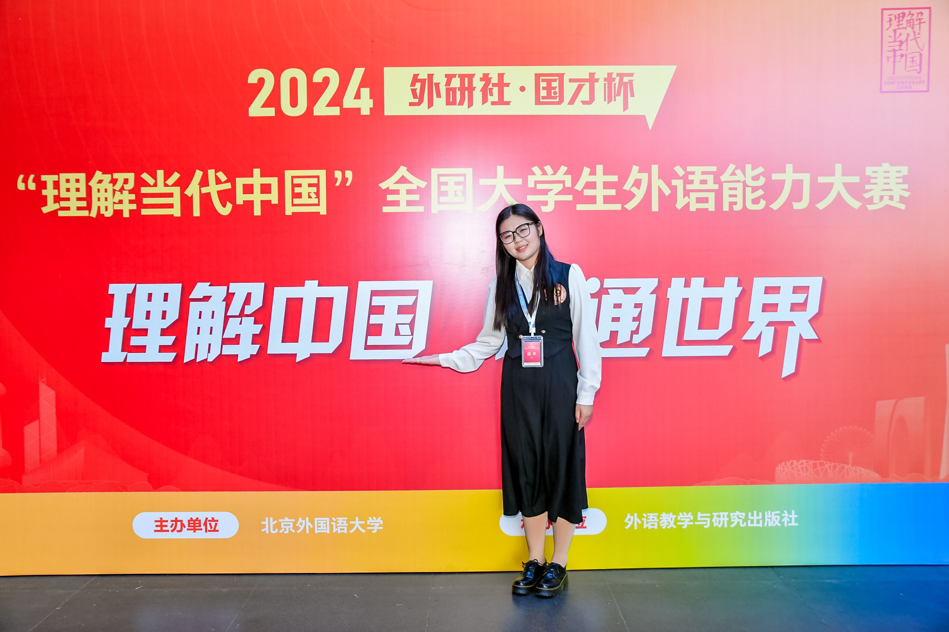 此次获得资助的学生于璟,来自外国语学院日语2202班,家庭经济条件艰苦,但学习成绩优异,连续两年专业和综测成绩保持年级第一,荣获2024年国家奖学金等荣誉,还积极参与各类学科竞赛和社会实践活动,并取得优异成绩。在2024外研社·国才杯“理解当代中国”全国大学生外语能力大赛全国总决赛中,于璟一路过关斩将,脱颖而出,以全国第6名的成绩与北京外国语大学、北京大学等高校学子一道斩获金奖。