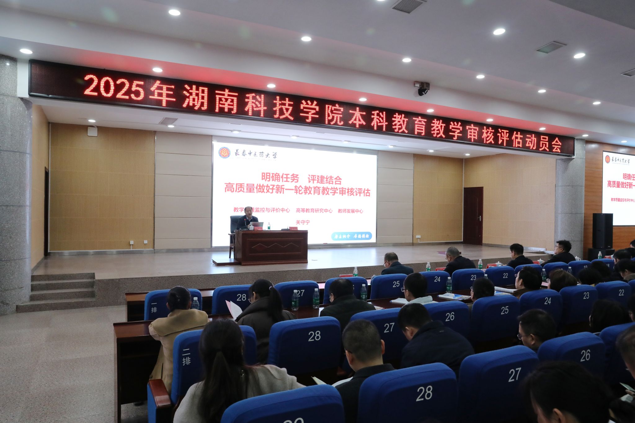 本网讯(通讯员 杨环俊)为进一步统一思想、凝聚力量,高质量迎接新一轮本科教育教学审核评估工作,3月4日下午,学校在潇湘大讲堂召开2025年本科教育教学审核评估再动员会。校党委书记李钢,党委副书记、校长黄创霞,校领导李常健、何福林、陈灿军、何海,党委委员、组织部部长杨涛出席会议,会议由何福林主持。