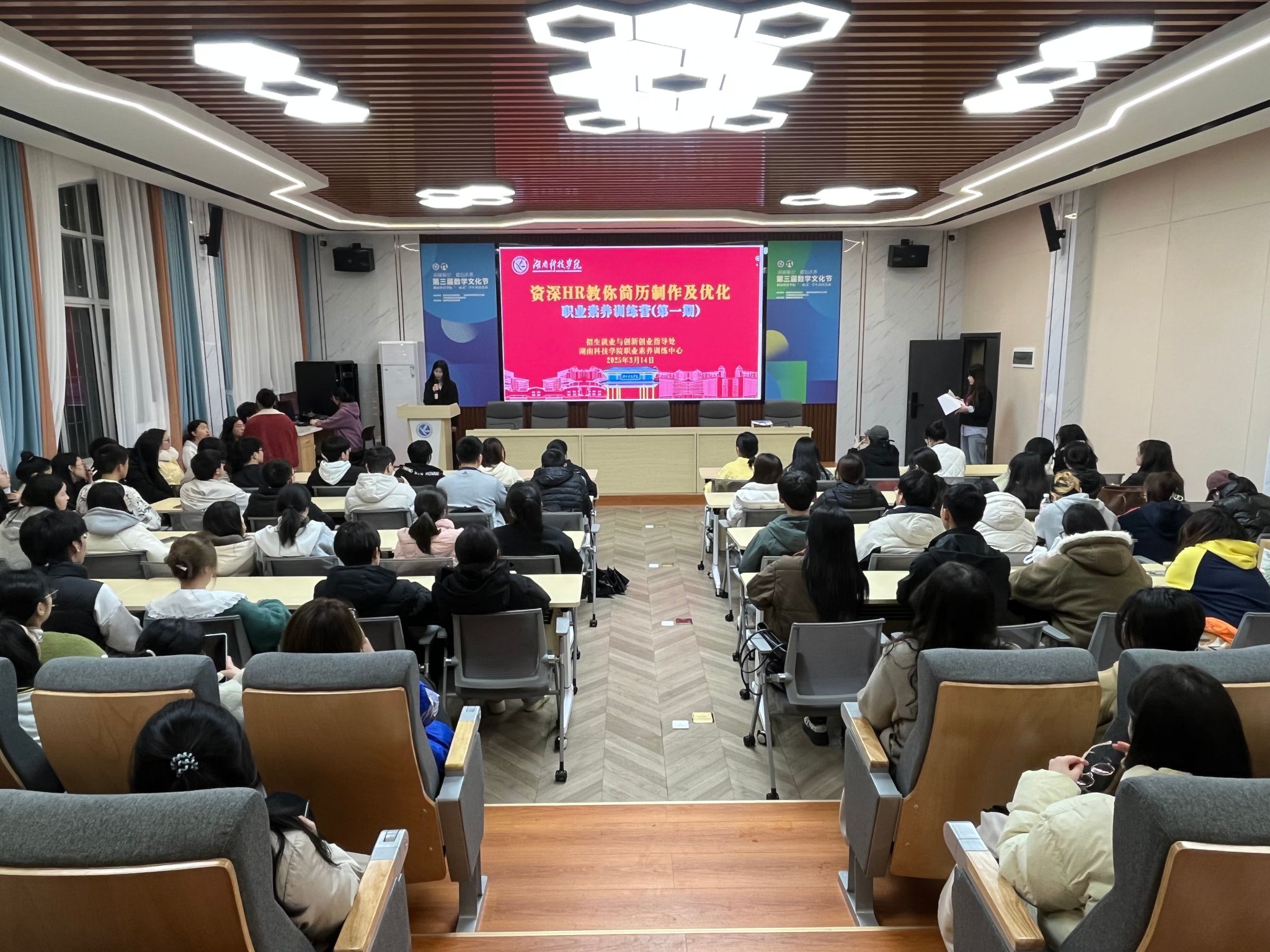 活动以“简历制作与职场通用力提升”为主题,朱紫微结合企业招聘实践,针对学生关注的“简历内容精炼技巧”“差异化竞争力打造”等核心问题展开系统讲解。通过典型案例分析与现场互动,深入解析HR筛选简历的底层逻辑,提供可操作的优化策略。旅游与文化产业学院林同学表示:“通过专业指导,不仅认识到简历在求职中的战略价值,更掌握了数据化呈现、成果量化等实用方法,将针对性完善求职材料。”