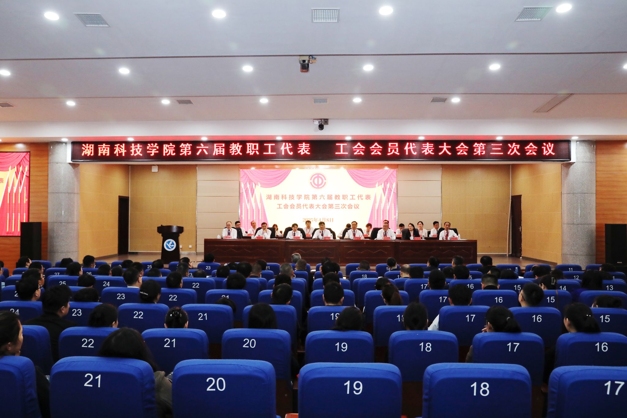 下午,为期一天的第六届教职工代表、工会会员代表大会第三次会议圆满完成各项议程,在潇湘大讲堂闭幕。会议通过学校工作报告、工会工作报告、2024年财务预算执行情况和2025年财务预算安排报告、工会经费审查工作报告。