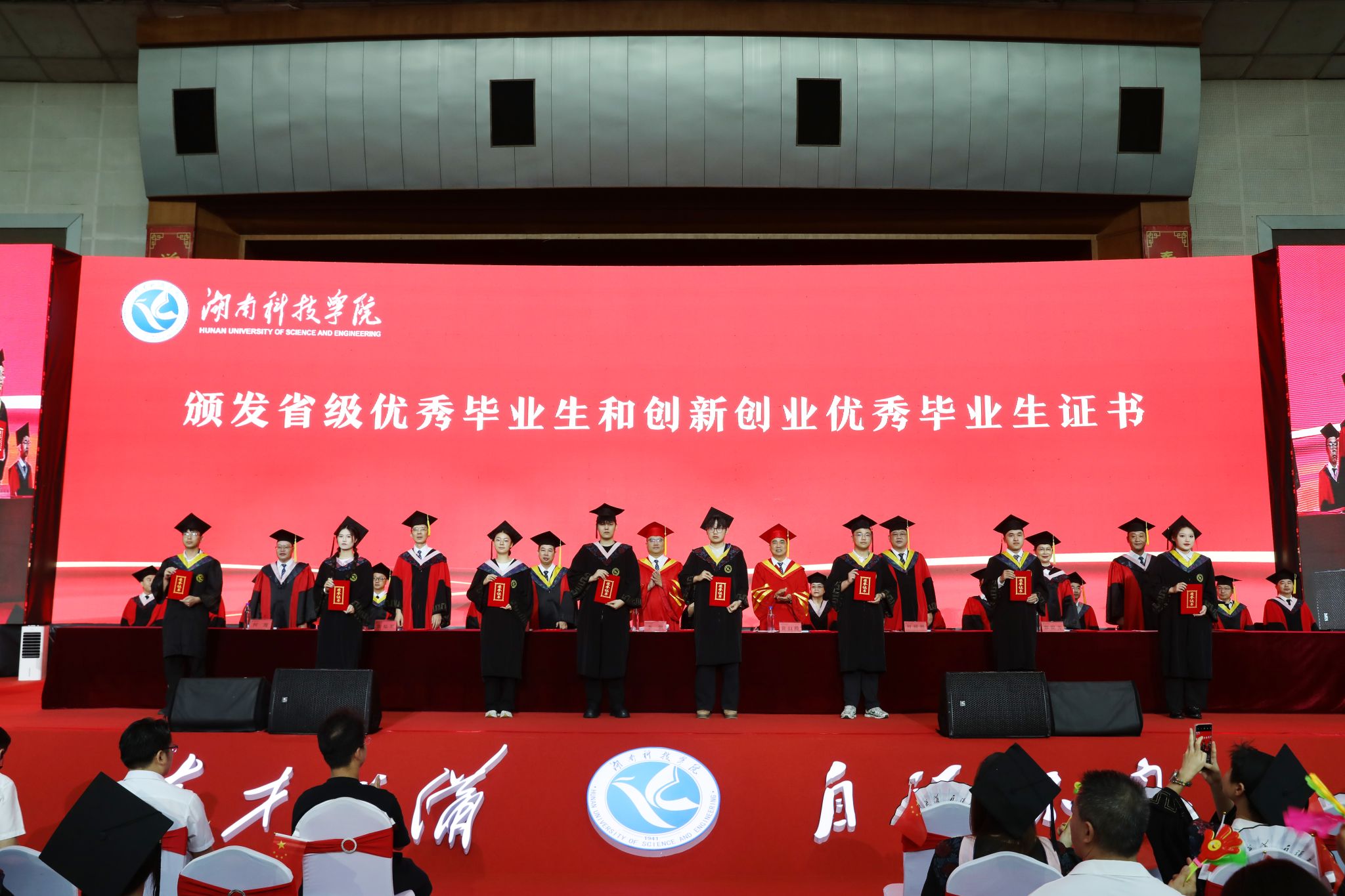 毕业典礼前,全体师生以歌声共鸣青春脉搏,表达对毕业生们最美好的祝福,紧随其后的《遇见・湘科院》原创毕业短片,用光影勾勒了学子们的成长轨迹,既串联起大学四年的珍贵记忆,更表达出他们对未来人生的憧憬与向往。