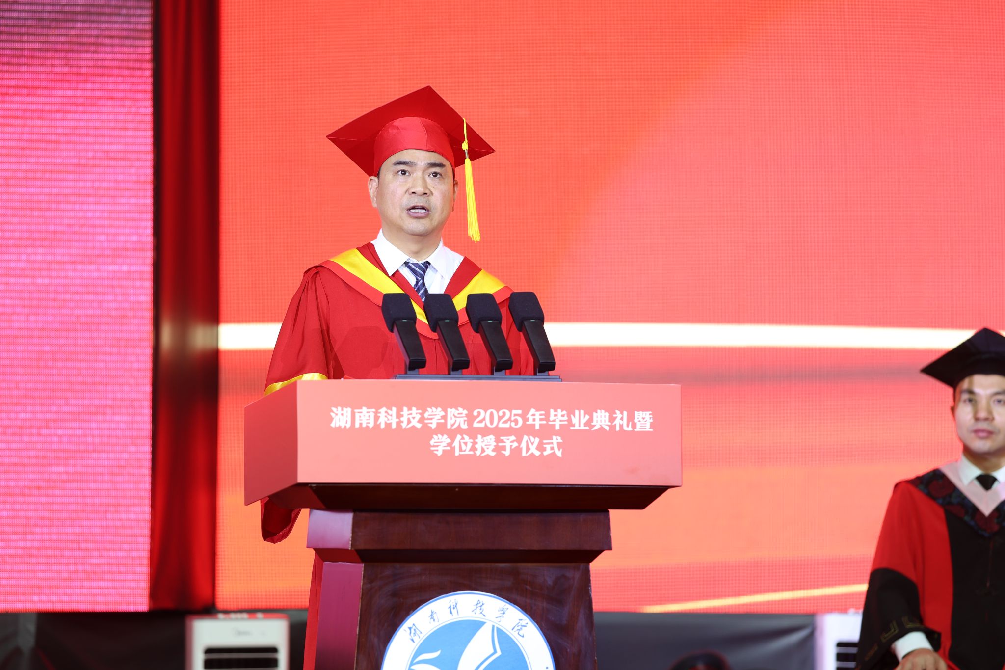 学校相关职能部门负责人,各教学学院党总支书记、副书记,毕业班辅导员、2025届全体毕业生参加典礼。
