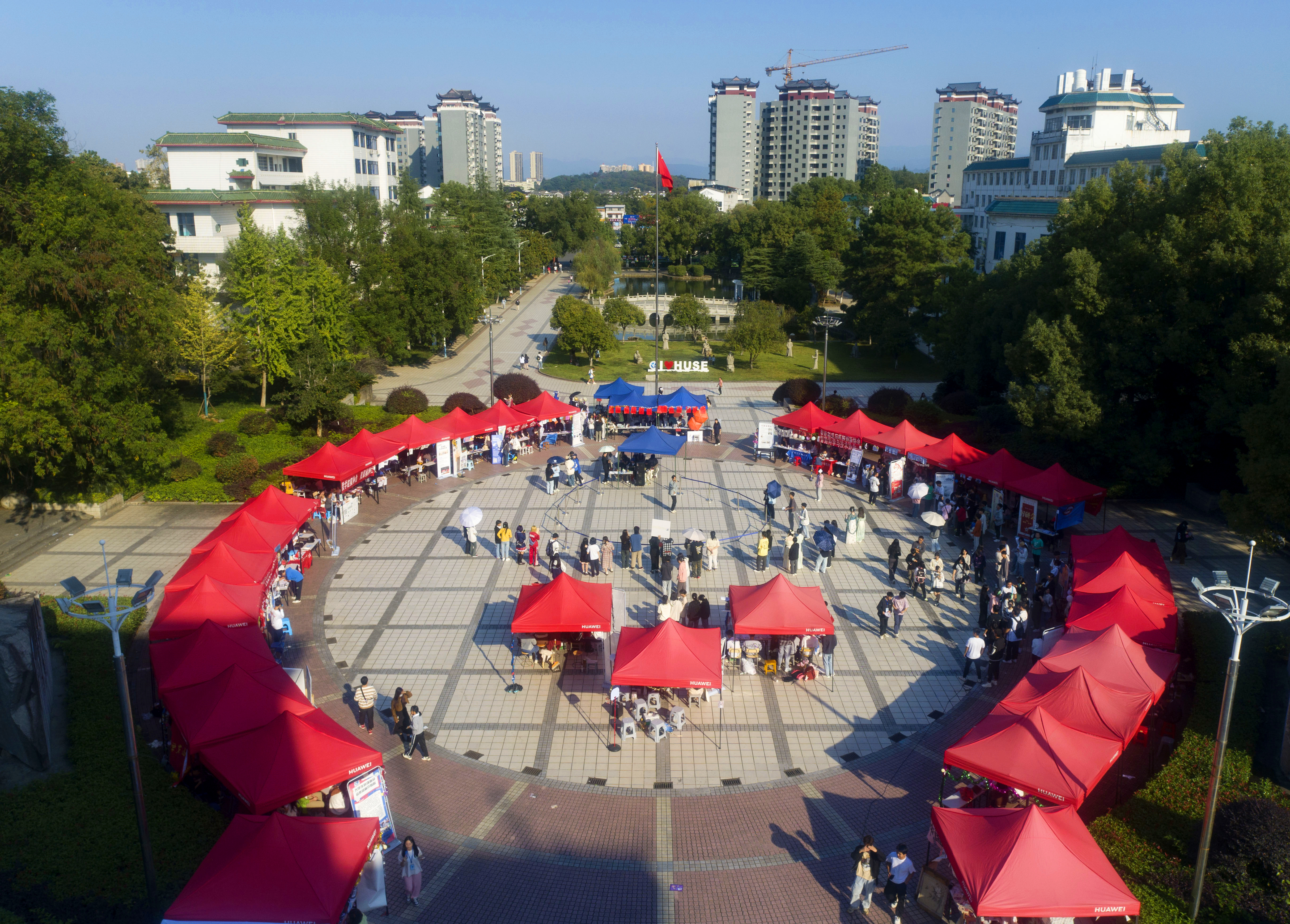 本网讯(记者 曾紫然 曾恬婧)10月21日,我校59个学生社团在文化广场集体“亮相”,招新“战争”一触即发。各社团纷纷拿出各种看家本领,吸引招揽不同兴趣爱好的新同学“入社”。