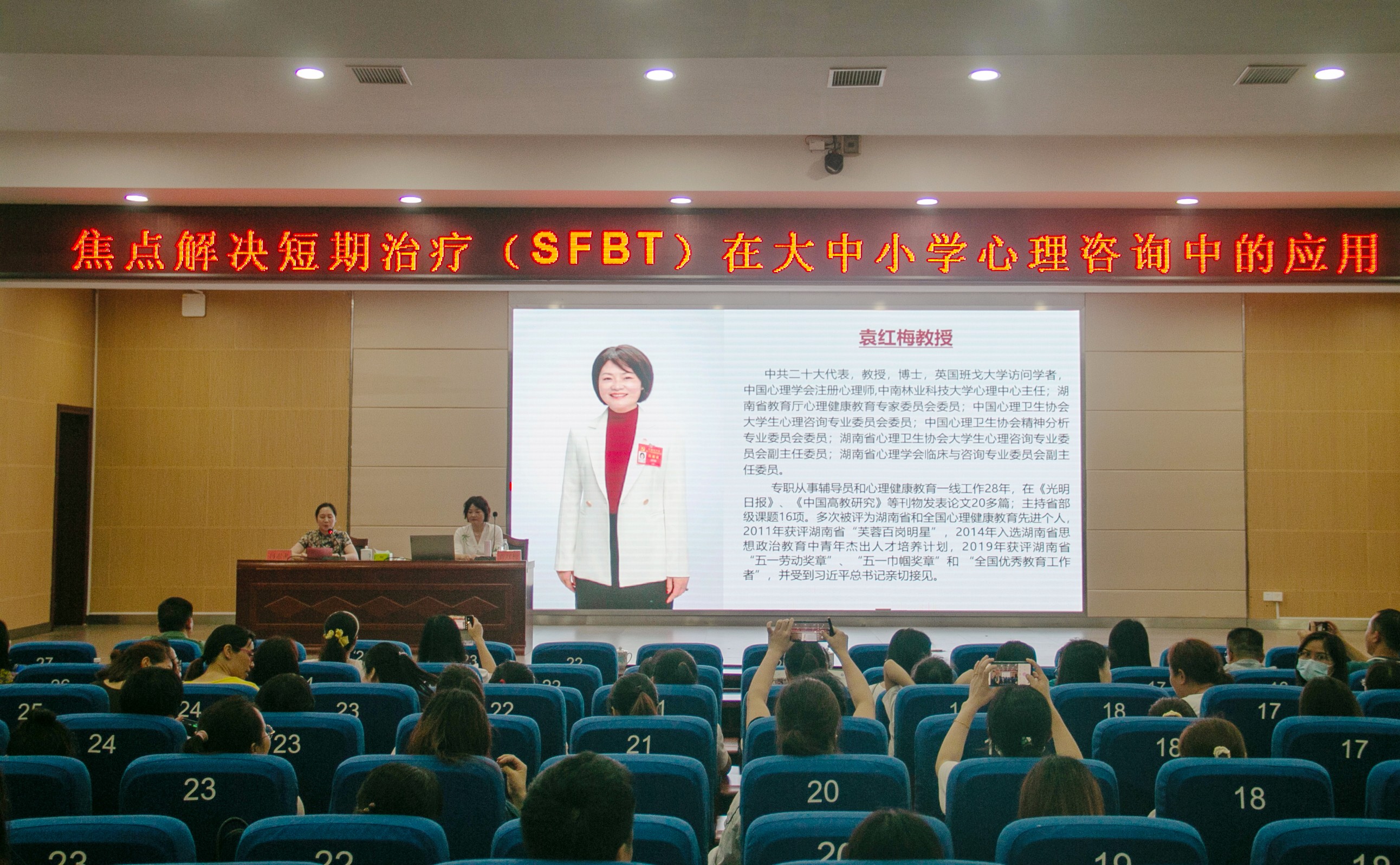 袁红梅教授以《焦点解决短期治疗(SFBT)在大中小学心理咨询中的应用》为题,从“焦点解决短期治疗”的概述、辅导流程及应用3个方面进行了讲授。袁红梅教授指出,在咨询中讨论问题只会引起问题,讨论解决才会创造解决。我们应带着尊重、希望、欣赏的态度,给来访者赋能,与来访者共同构建生活意义,帮助来访者走向美好未来。