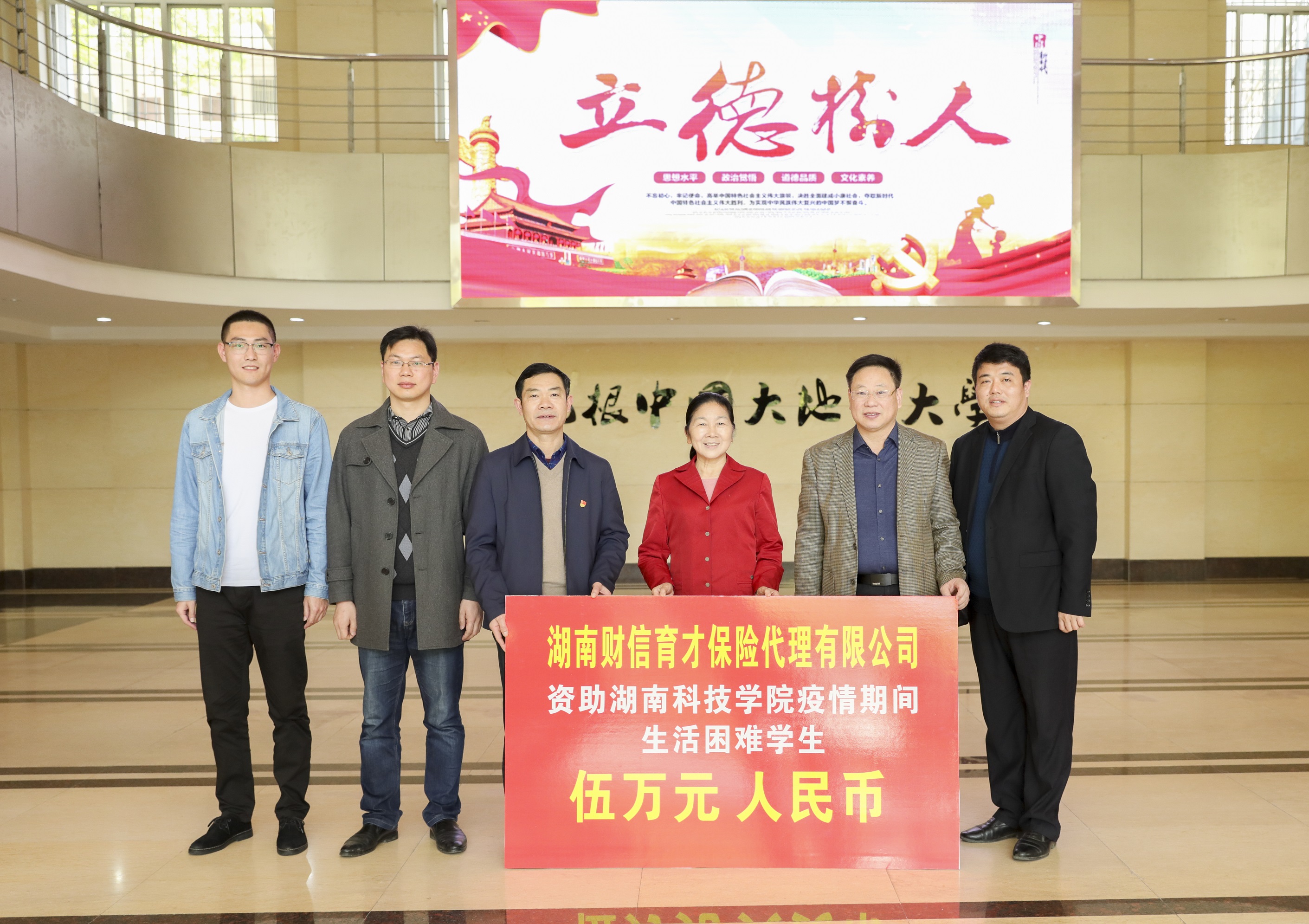 湖南财信育才保险代理有限公司是一家由中国银保监会监管的专业代理机构,公司在了解我校困难学生疫情期间的学习、生活状况后,慷慨捐赠5万元人民币,资助100名疫情期间生活困难学生。