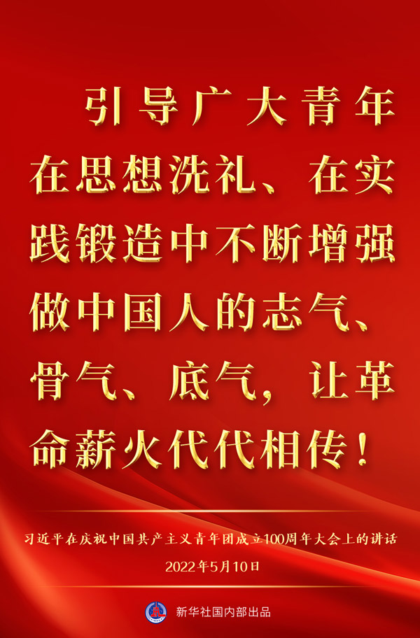 5月10日上午,中共中央总书记、国家主席、中央军委主席习近平出席庆祝中国共产主义青年团成立100周年大会并发表重要讲话,一起来看金句。