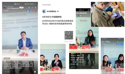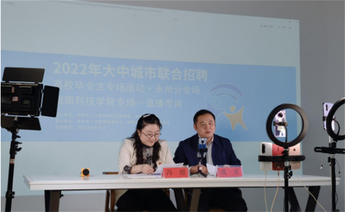 本网讯 “创业贷款怎么申请?”“就业见习到哪报名?”“有入职培训吗?”……4月19日下午3点,永州市2022年大中城市联合招聘高校毕业生拼搏在线(中国)唯一官方网站直播带岗专场正在我校及永州智慧就业视频号、抖音号等平台同步直播,屏幕上滚动着来自高校毕业生的提问。副校长郑银芳、永州市人社局党组成员副局长蒋新山莅临现场指导。