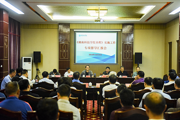 刘湘溶作督导工作总结讲话。他指出,学校能把《章程》做为依法办学、自主管理的依据,提升了依法治校水平,推进了学校各项事业的发展,同时做到了与时俱进、开拓创新,在纪委监督同级党委等方面做了大量实践性探索,拓展了依法治校的内涵。刘湘溶希望学校在今后的工作中根据新精神、新要求修改完善大学章程,提升对大学章程重要性认知的政治站位,确保大学章程在大学治理中的神圣地位;发挥好党委主体责任,更好地完善党委领导下的校长负责制,处理好学术权力与行政权力的关系,合理地建构好学术与行政、学校与院系之间的架构和功能。