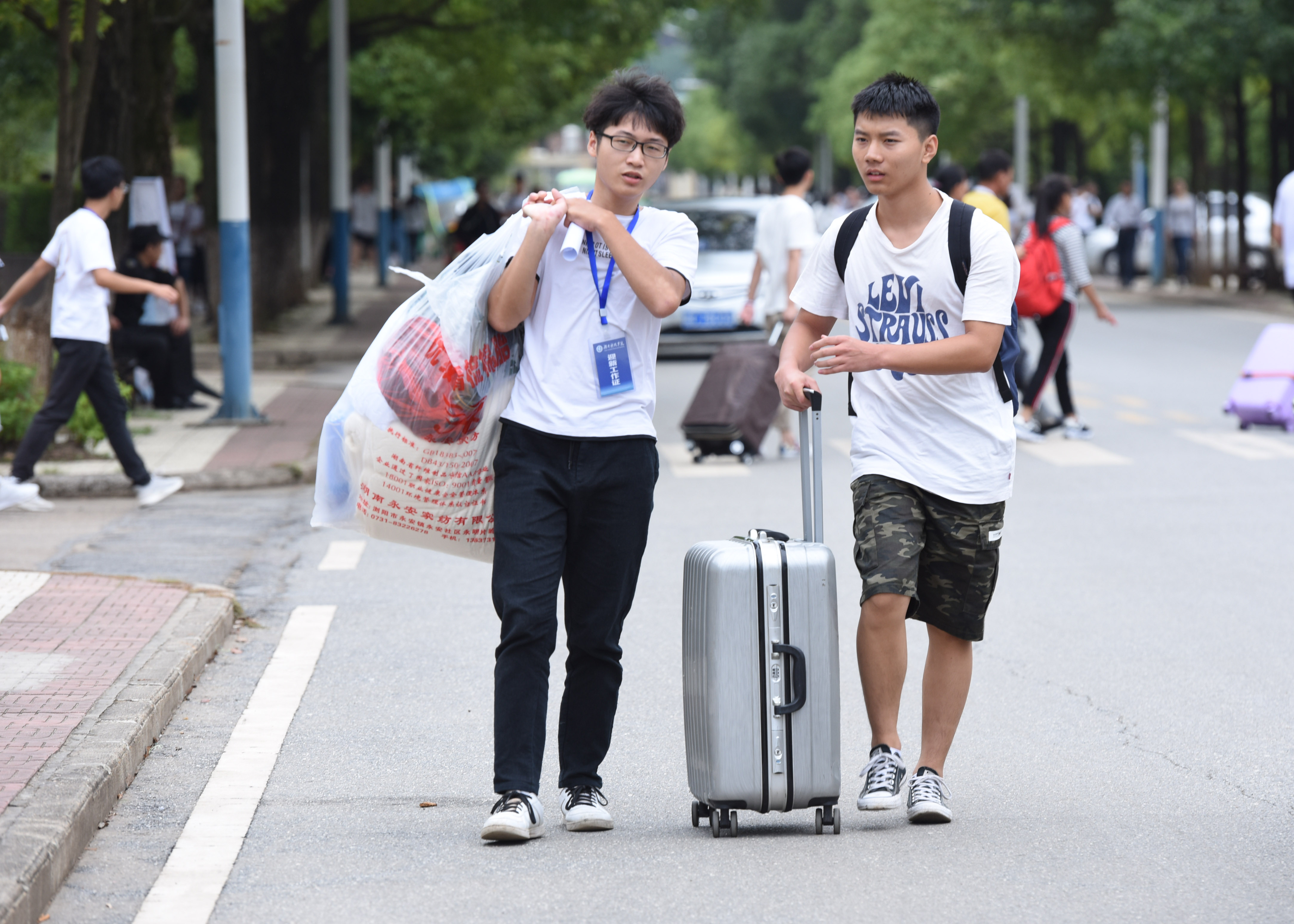 跨越了三千多公里,火车运行了四十多个小时,化学与生物工程学院的薛同学终于来到了学校。从入校到完成报到来到宿舍,一路上行李虽多,但薛同学却坚持自己拿行李,不想让父母太劳累,这让家长也很是欣慰,现场一片其乐融融的景象。在报到过程中,他兴奋地说,“来了之后感觉学校还挺好的,学长学姐们也很热情。”薛同学的家长是一名退役军人,送孩子来到学校后也感受到了学校师生的满腔热忱,希望孩子能在学校成长成才。