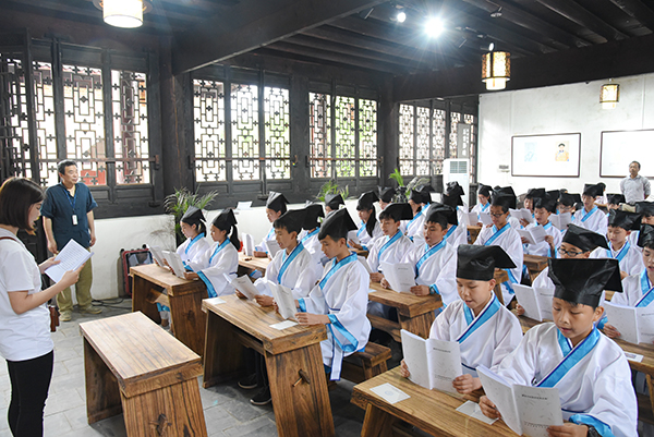 本网讯 “巧者言,拙者默。巧者劳,拙者逸。巧者贼,拙者德。巧者凶,拙者吉。”5月12日,道县濂溪书院传来郎朗读书声,80名中小学生在我校国学院院长张京华的带领下着汉服诵读周敦颐名篇《拙赋》。这是濂溪书院国学经典讲读首场讲读活动之一。