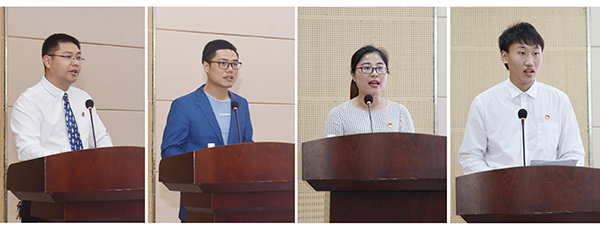 优秀青年教师代表、化学与生物工程学院尹业师,电子与信息工程学院陈世灯;“五四”红旗分团委获奖单位代表人文与社会科学学院分团委书记邹爱丽;优秀学生代表体育学院王占康先后发言。他们结合自己的学习工作实际,分享了自己“坚定理想信念 努力奋斗成才”的经历、成长与收获。
